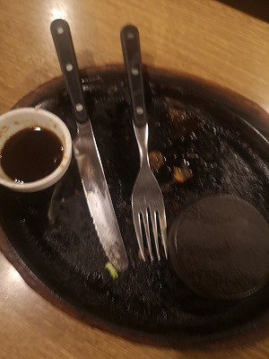 そして切ったお肉を左手に持ったフォークでそのまま口に運びます。