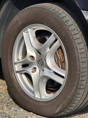 純正18インチアルミホイールは、カイエンSの力強いフォルムにマッチしたデザインで、高級感とスポーティさを兼ね備えています。タイヤサイズは255/55R18で、高いグリップ力と快適な乗り心地を両立しています。