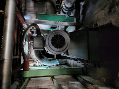 それをもっと巨大化したのがブロワーポンプユニットで、より早く空気を送ることによってチーズ染色機の中の糸をより早く乾燥させることができます。