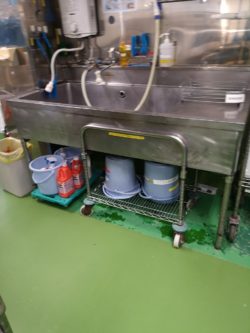 13クロムという磁石にくっつく鉄でできた流し台などの厨房設備があります。