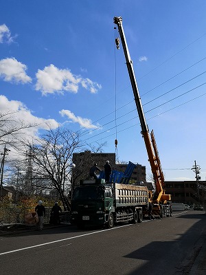 H鋼構造物で大型のものになると、トラックに積み込む際にレッカー作業が必要になる場合があります。