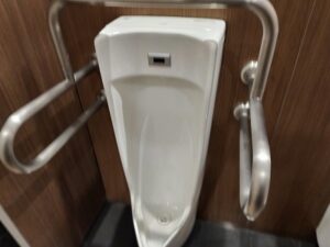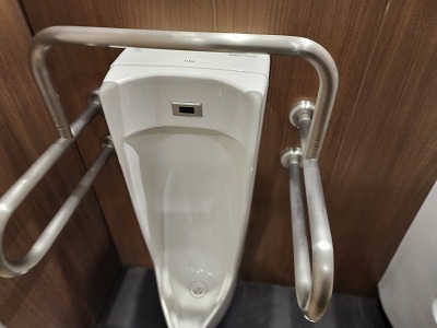 LIXIL・INAX 小便器用手すり ステンレスタイプ KF-701SJ は、公共トイレや商業施設など、不特定多数の人が利用する小便器に設置される手すりです。