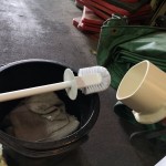 ブラシで擦って汚れを取ります。