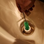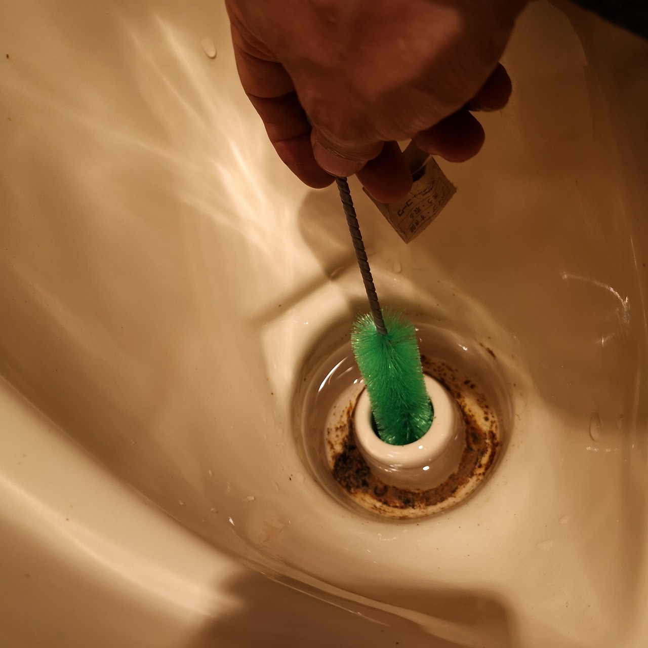 排水口の真ん中の汚れをブラシで汚れを取ります。