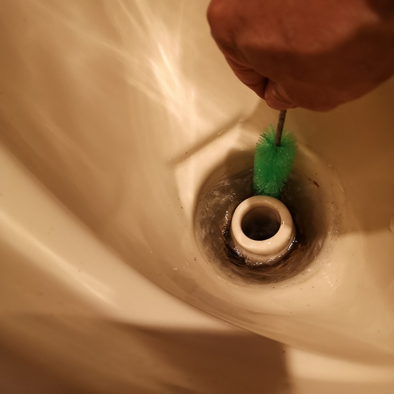 男子便器の下部の錆や尿石が硬くなった物は、ブラシでこすったぐらいでは、