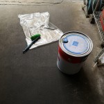 タイルの上にひくビニールは、スパークリーナーをかけて油汚れを取って