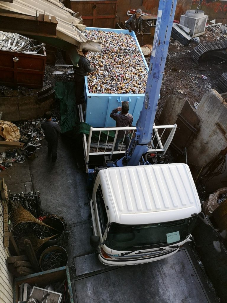 【現在はだいたい〇〇円位です】と回答をさせていただくとなんとそのお客様は、アームロール1車に大量の缶を積んでお持ち込みをされました。