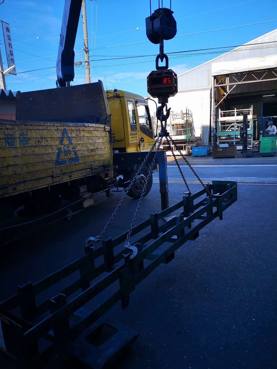 名古屋市緑区杜若で、鉄製棚の重量を計量しています。。