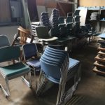 積み重ねの椅子は、座面と背もたれが鉄ではないので