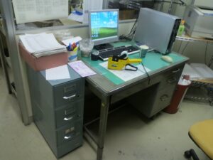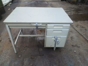 事務机は、事務所やオフィスなどで使用される作業用の机の総称です。事務所では主に書類作成、パソコン作業事務作業等が行われています事務机をで作業をして長時間使用しても効率よく事務作業ができるように設計されています。主な種類としては肩肘机、両肘机、膝机、L型デスクなどがありますスチール製品の事務机は上部で耐久性が高く、事務所で広く普及しています。木製品の物がありますが、これらは鉄屑ではなく木製品なので産業廃棄物の扱いとなります。